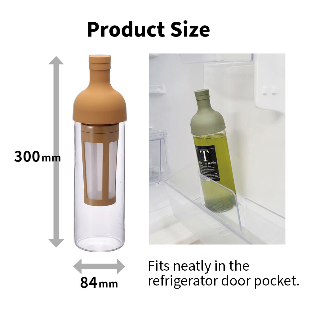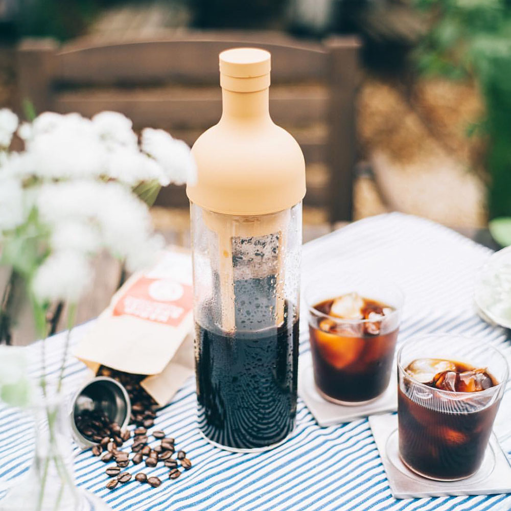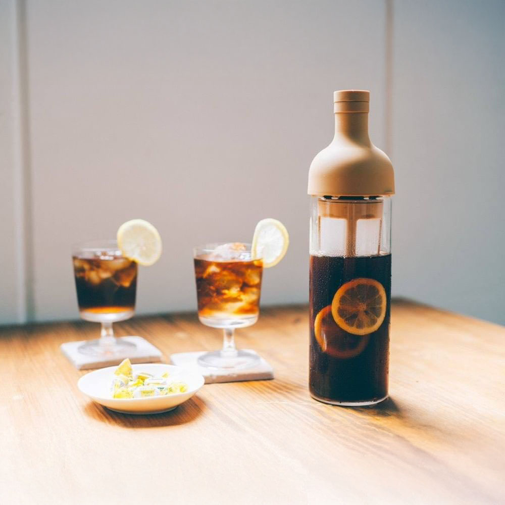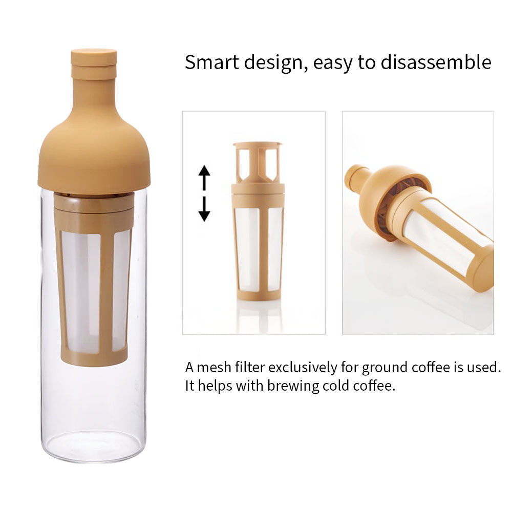 特酒瓶造型設計。可輕鬆做出美味的冰滴咖啡。 這壺不需麻煩作業就能做出冰滴咖啡,且直接保存。 用水慢慢抽出咖啡,能享受咖啡豆本身的味道和香味。 ‧附送細緻網子的長型濾網。