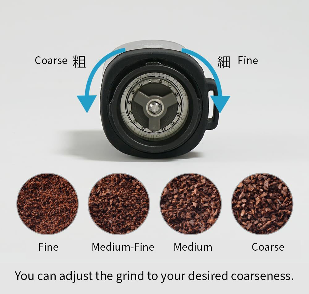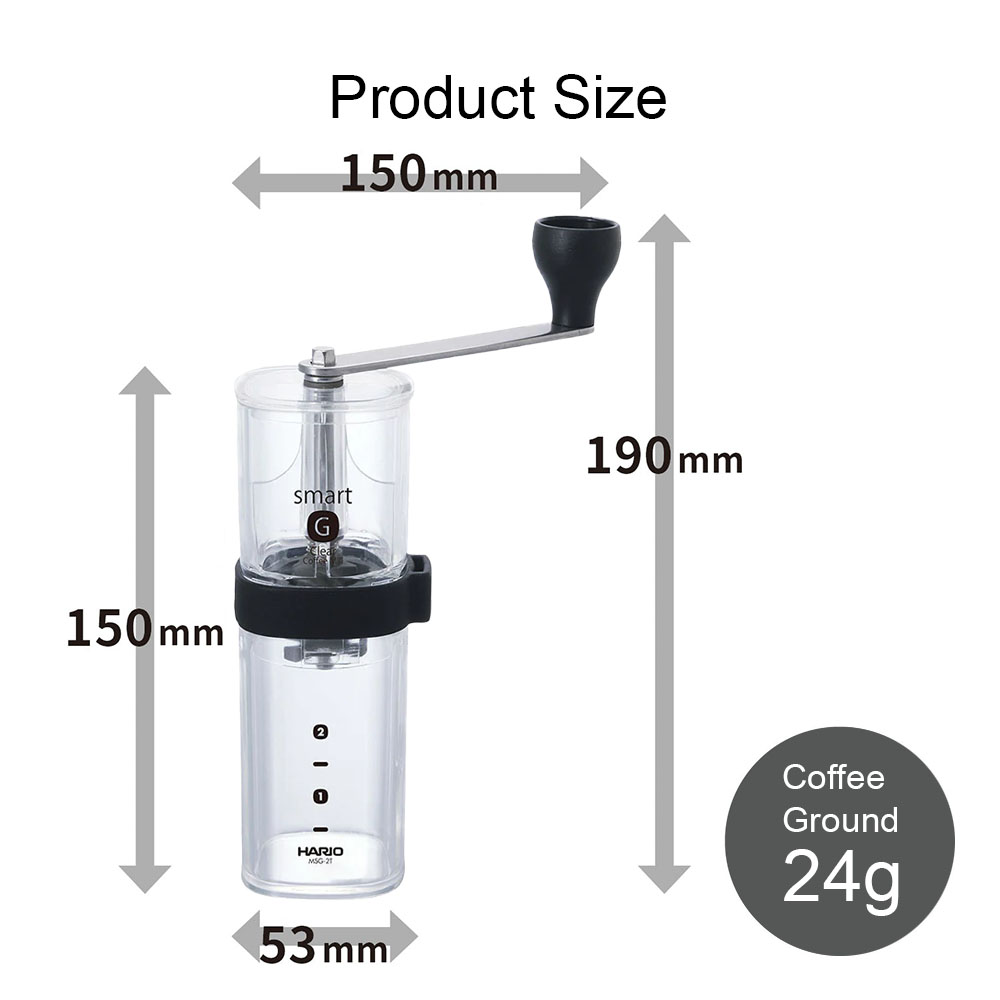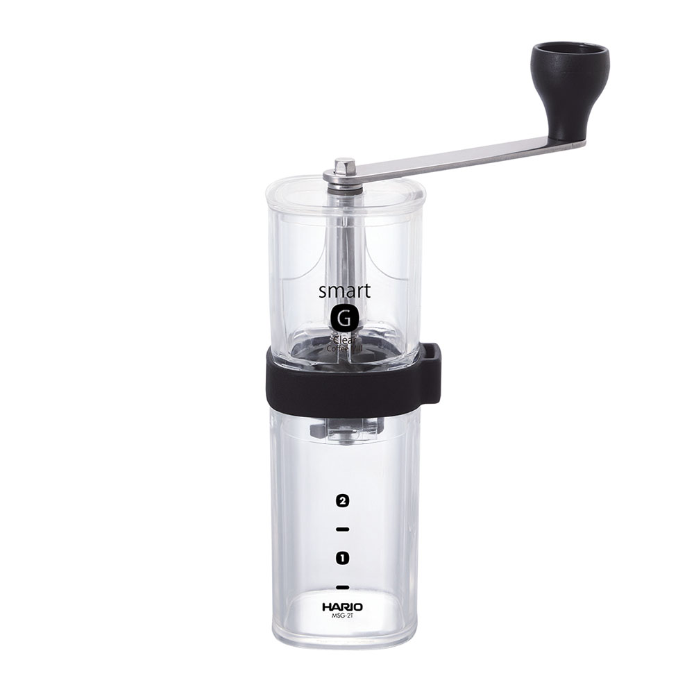 This coffee mill has a clear body, allowing you to see the beans at a glance.