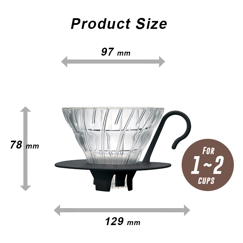 Color: Black Size: W132 x D115 x H96mm Φ115mm Capacity: 01 (1-2 cups) Weight: approx. 290g Material: Glass dripper / Heatproof glass