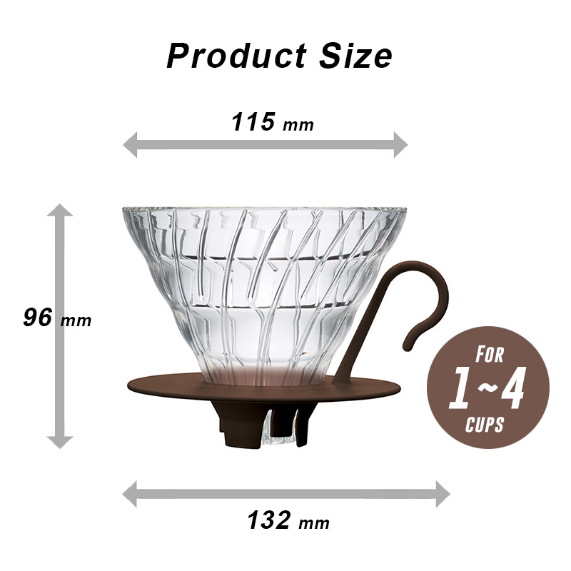 Color: Chocolate Brown Size: W132 x D115 x H96mm Φ115mm Capacity: 02 (1-4 cups) Weight: approx. 350g Material: Glass dripper / Heatproof glass
