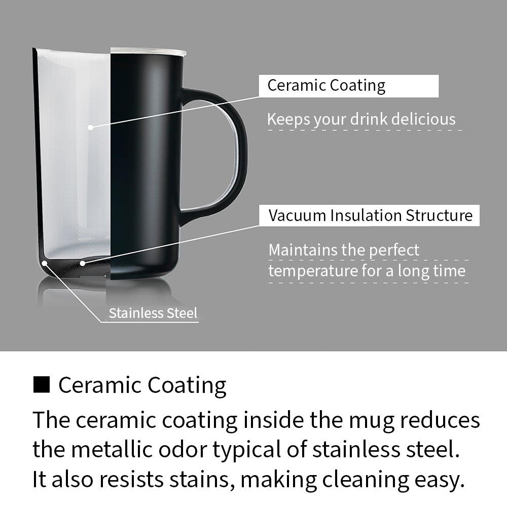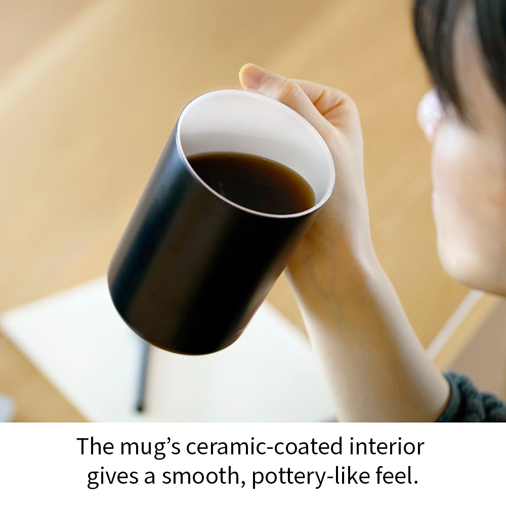 Enjoy the original taste of coffee with this ceramic-coated heat-retaining mug