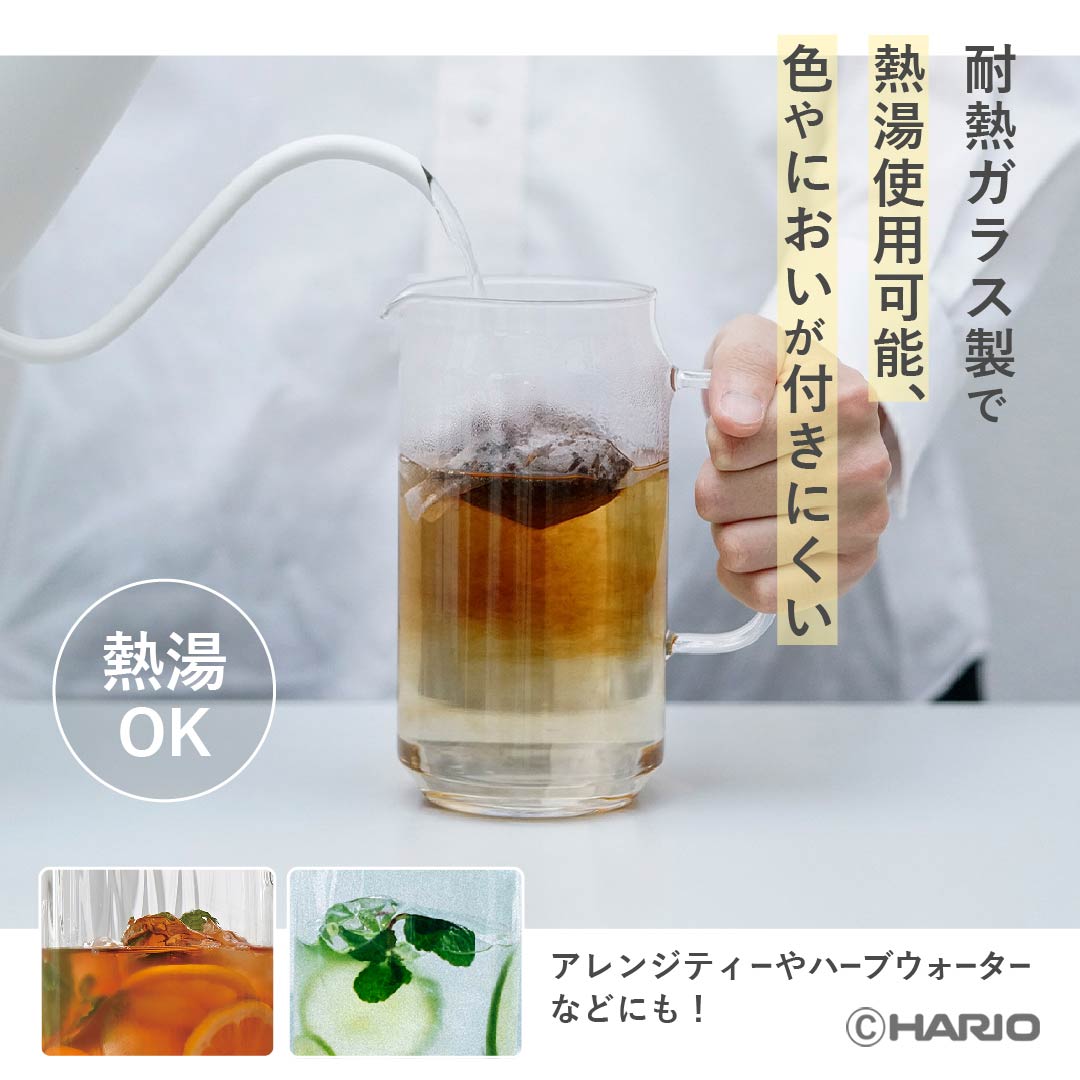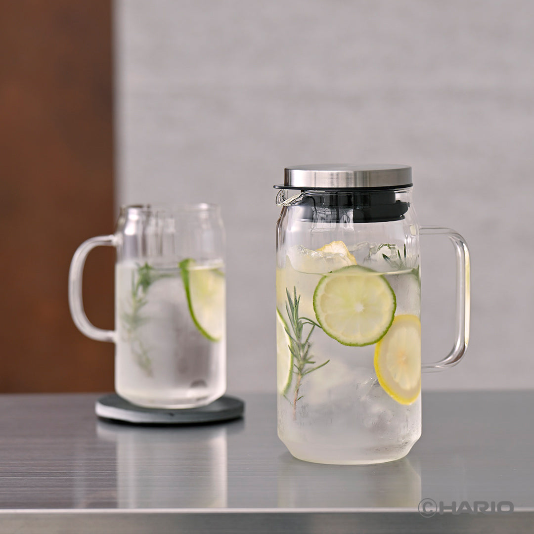 A stylish heatproof glass water jug with elegant vertical lines.