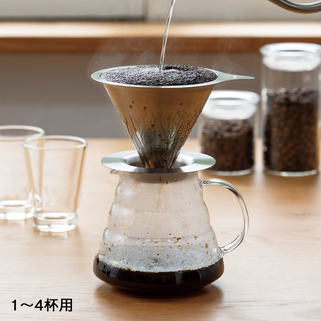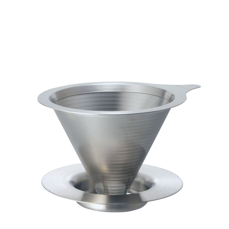 A dripper made entirely of stainless steel with a double mesh filter