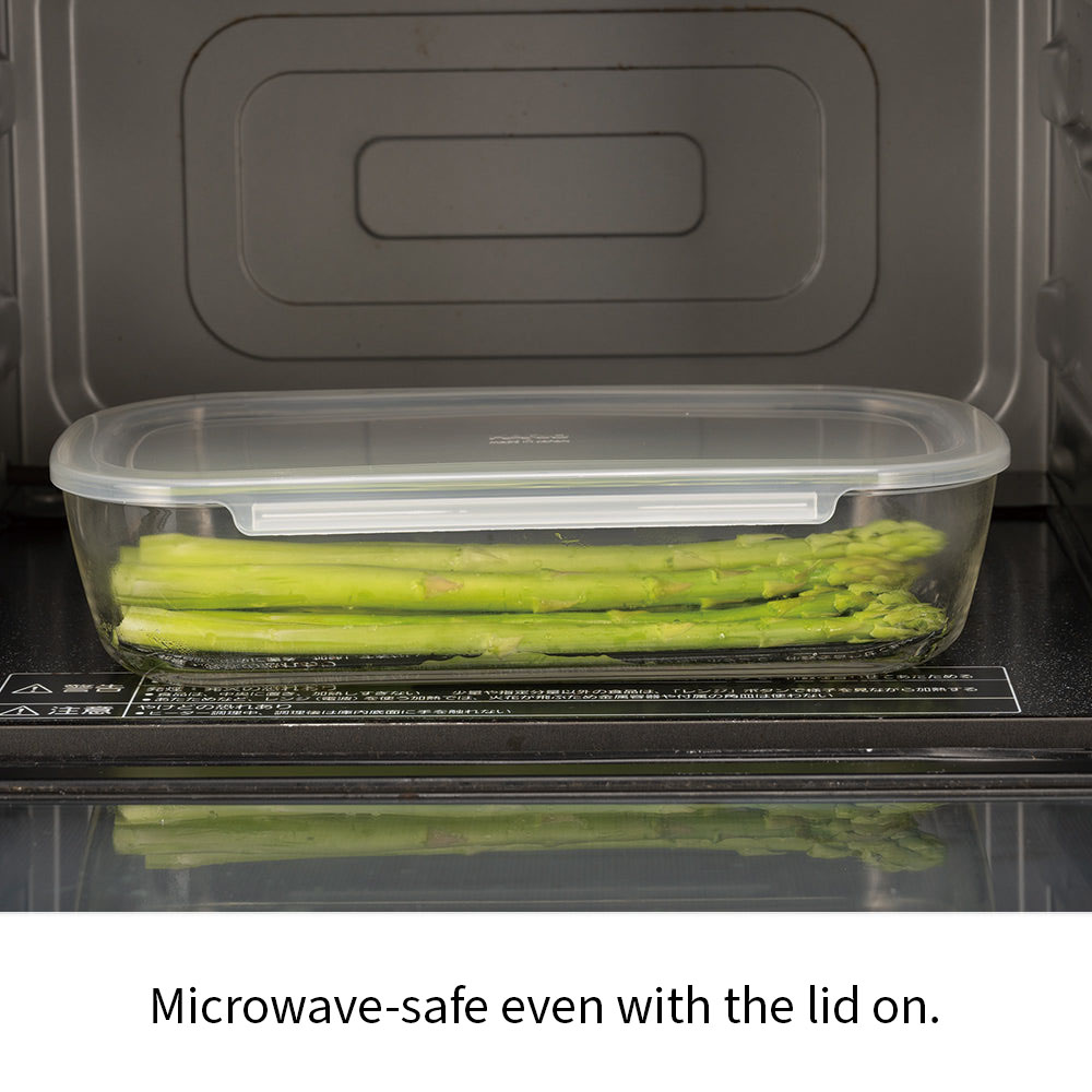 The glass is oven-safe, microwave-safe, and dishwasher-safe.