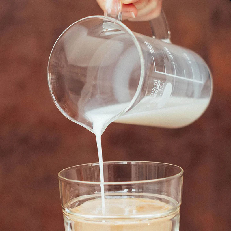 The wide, flat handle is easy to grip for a steady, controlled pour.