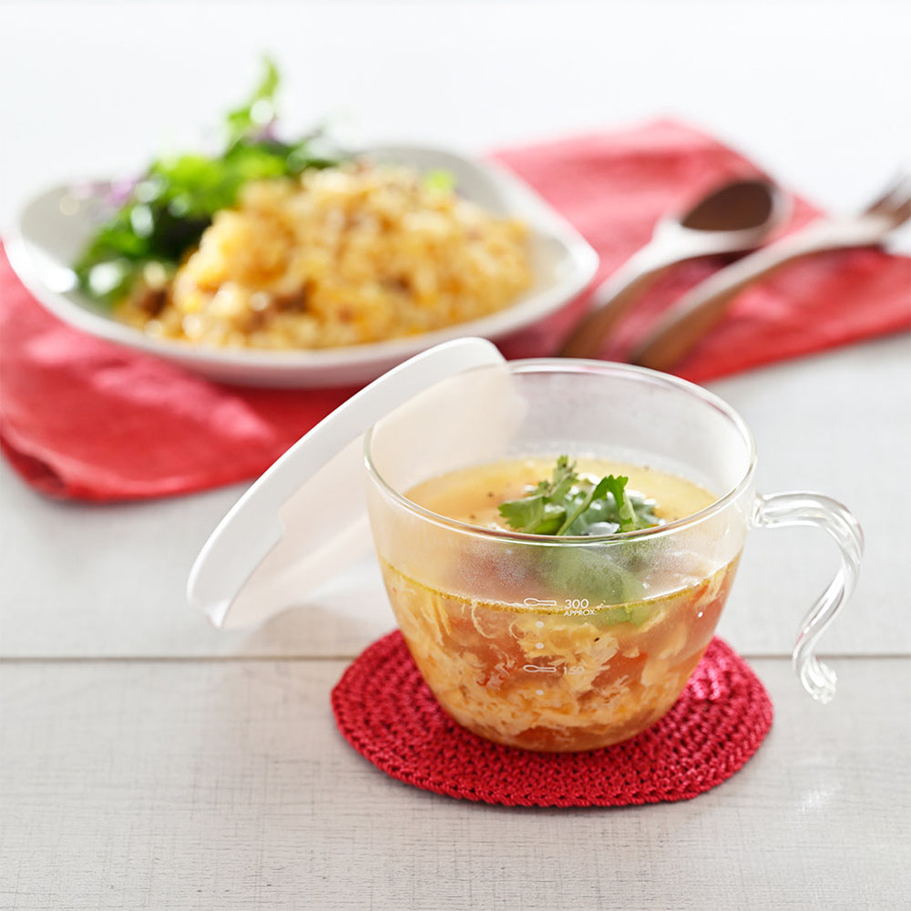 臨時想多加一道菜時,直接放入微波爐加熱,即可連杯端上餐桌。