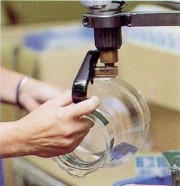 Ball-shaped glass at 1,300 degrees centigrade of heat is extended
